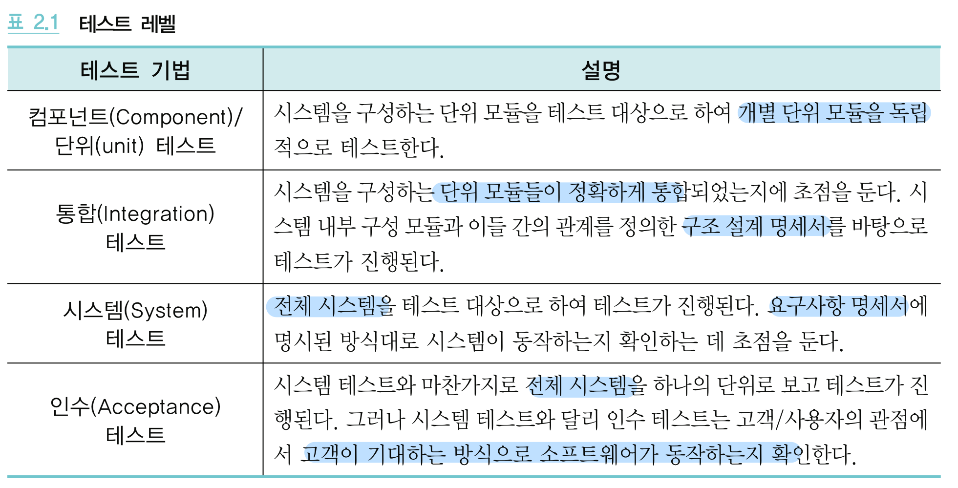 2.2.2 테스트 레벨의 의한 분류