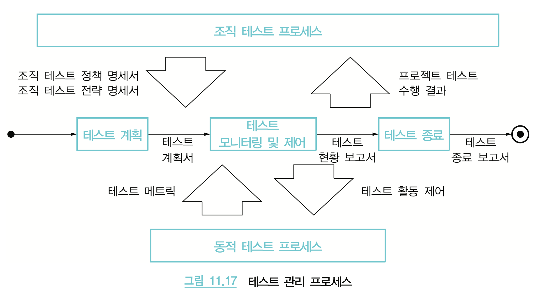 - 동적 테스트 프로세스의 수행에 대한 모니터링 결과와 이에 따른 제어 결과는 주기적으로 테스트 현황 보고서에 기록됨