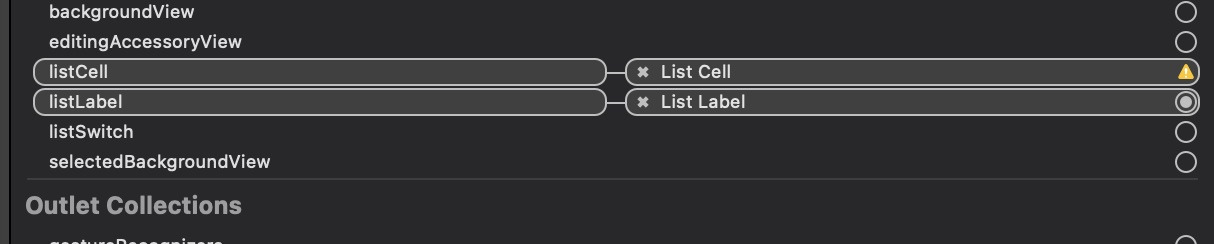 "이 클래스는 키 'listCell'에 대해 키-값 코딩(키-값 코딩) 호환이 아닙니다."