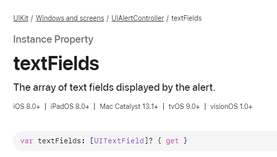 alert controller에서 textfield는 배열로 사용되고 있었다.